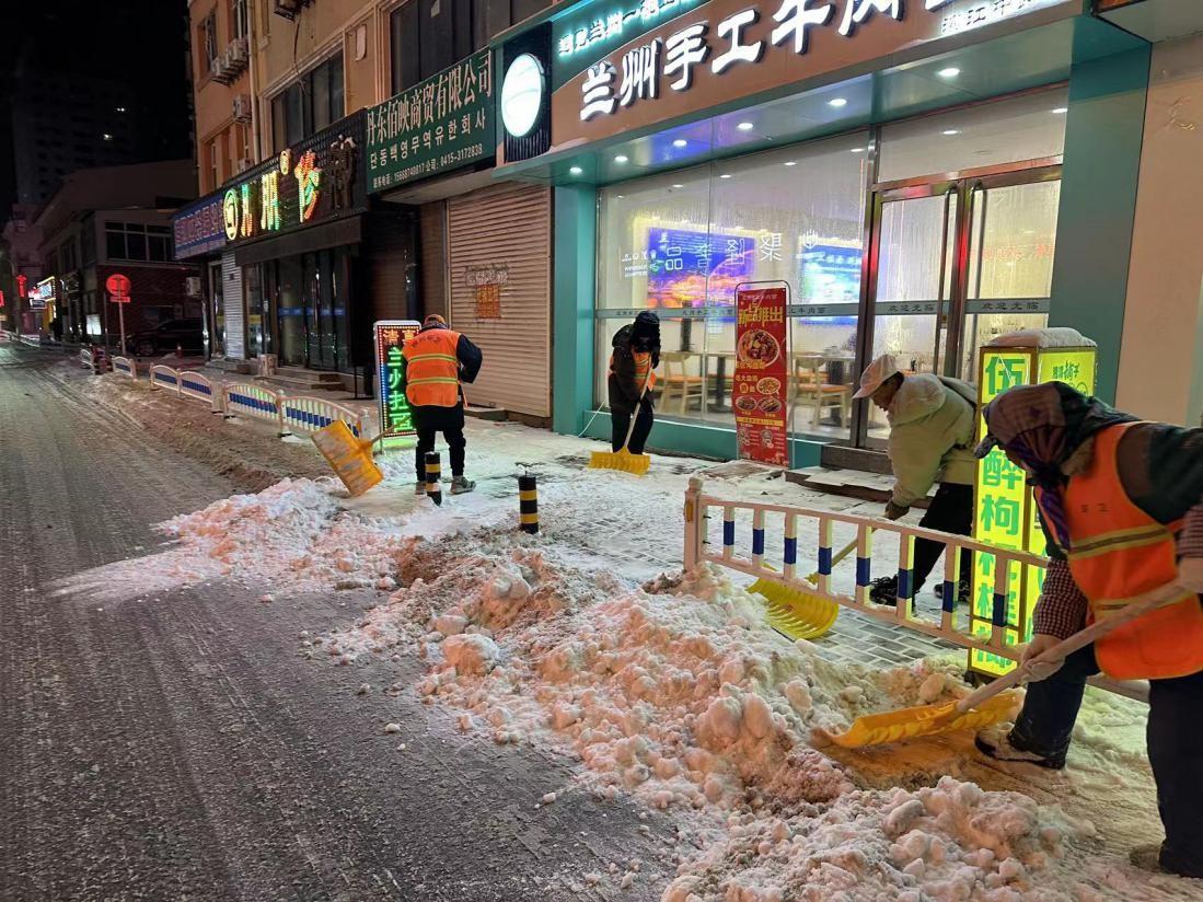 丹东市住建局组织下属事业单位第一时间投入机械化力量,按照除雪要求对城区内40条主要街路以及桥梁、坡路、广场等重点部位进行机械化绿色除雪。城建中心公园服务部采取“机械+人工”等形式,组织人员开展清运除雪工作,同时对园区树木挂雪情况进行巡视,及时处理折枝短干,规避安全隐患。